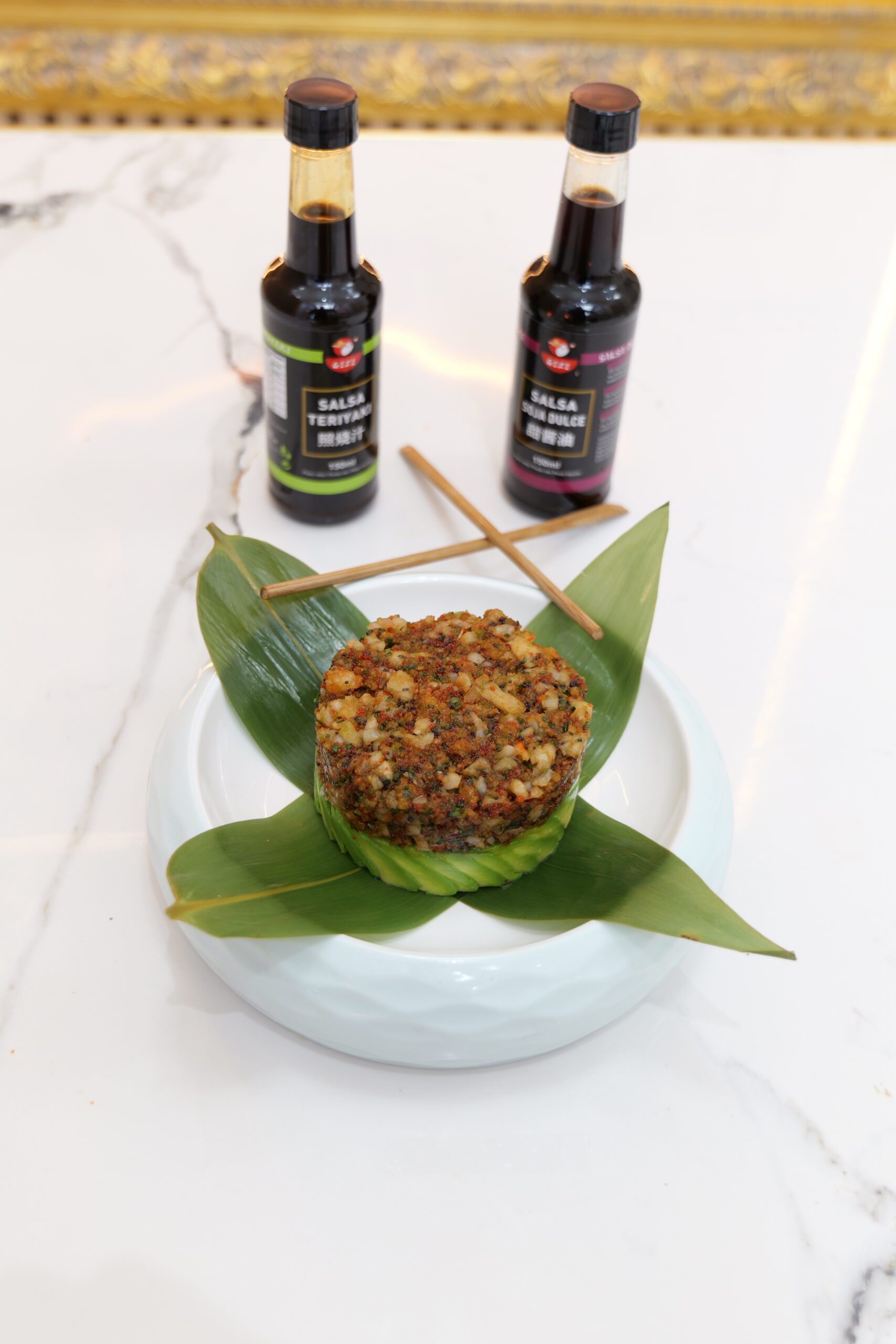 Incluye aguacate cremoso, gambas jugosas y un toque dulce de salsa teriyaki.